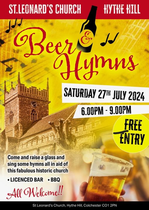 All proceeds from Beer & Hymns will support the aims of Friends of St Leonard-at-the-Hythe and the exciting future of this wonderful 'redundant' church: More details at: