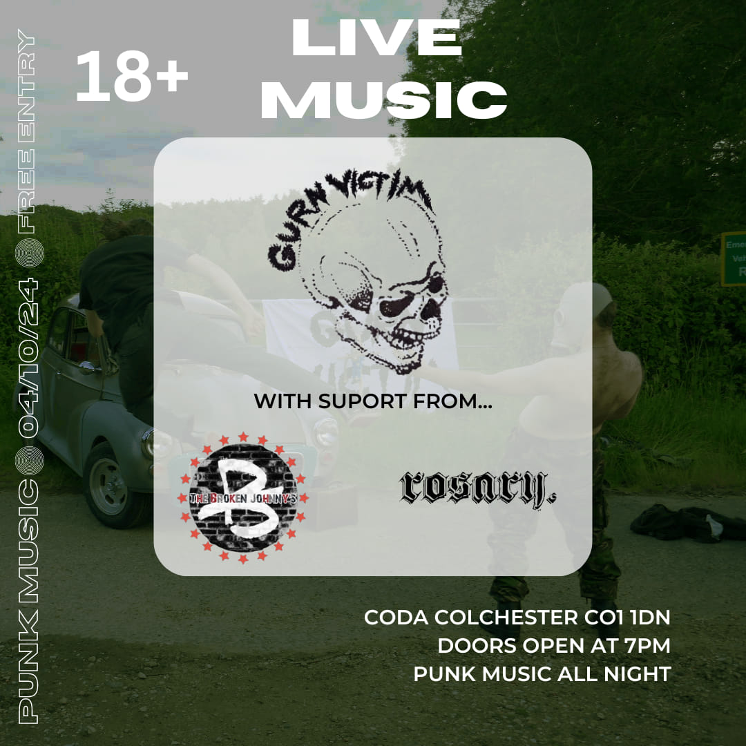Gurn Victim started their journey together as a four piece in April 2023, featuring Ron Lewis on vocals, Ethan Blackwell on guitar, Conrad Clare on drums and Tommy Sabrino-Roberts on bass. Then decided to take on Woody Pearce in September 2023 on lead guitar to make it a 5 piece.