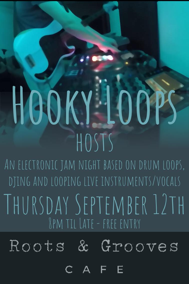 An electronic jam night based on drum loops, DJing, and looping live instruments and vocals