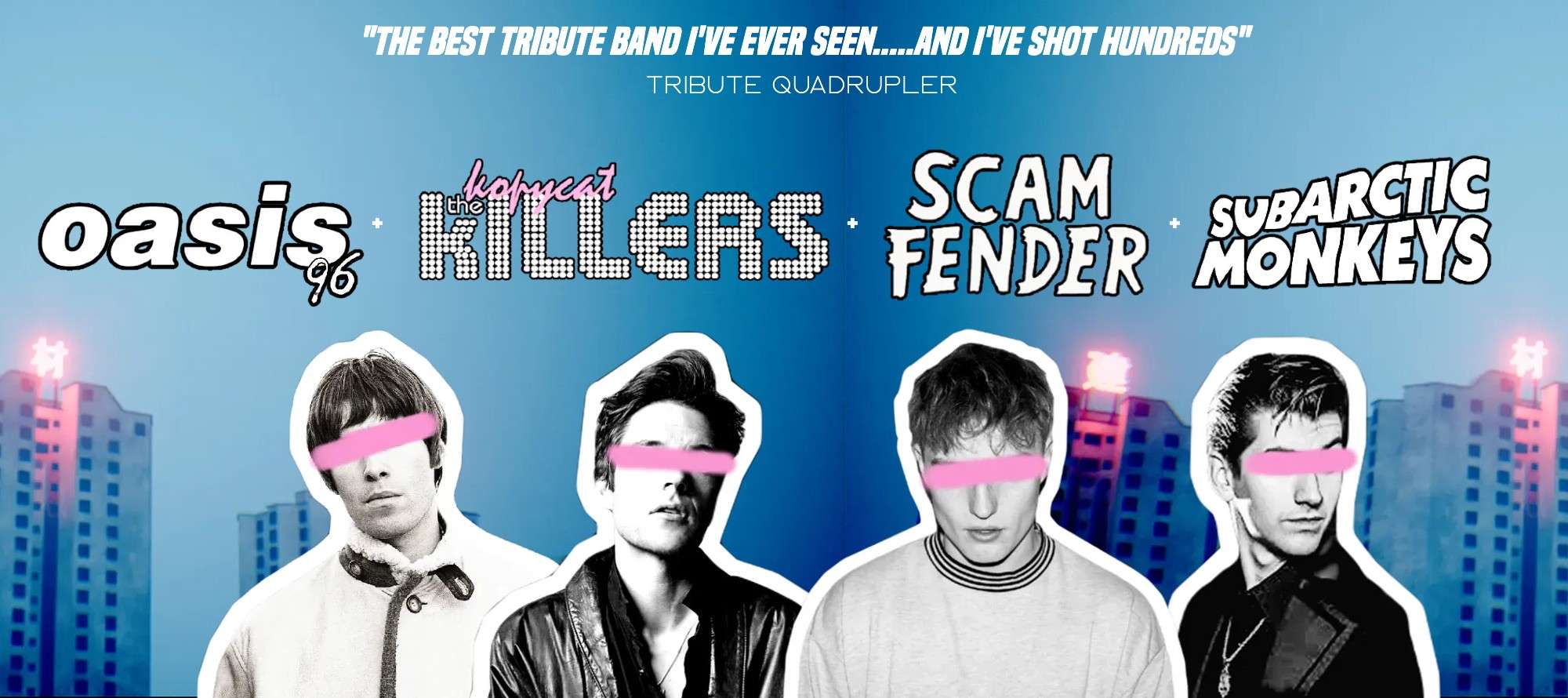 ‘Oasis 96’ are the ultimate Oasis Tribute band (and employ a strict pre-96 only setlist door policy). Featuring the incredible vocals of Miguel Carling as ‘Liam’ and bags of Oasis attitude – the attention to detail in the tones and textures to create the authentic Oasis wall of sound really shines through at an Oasis 96 gig.