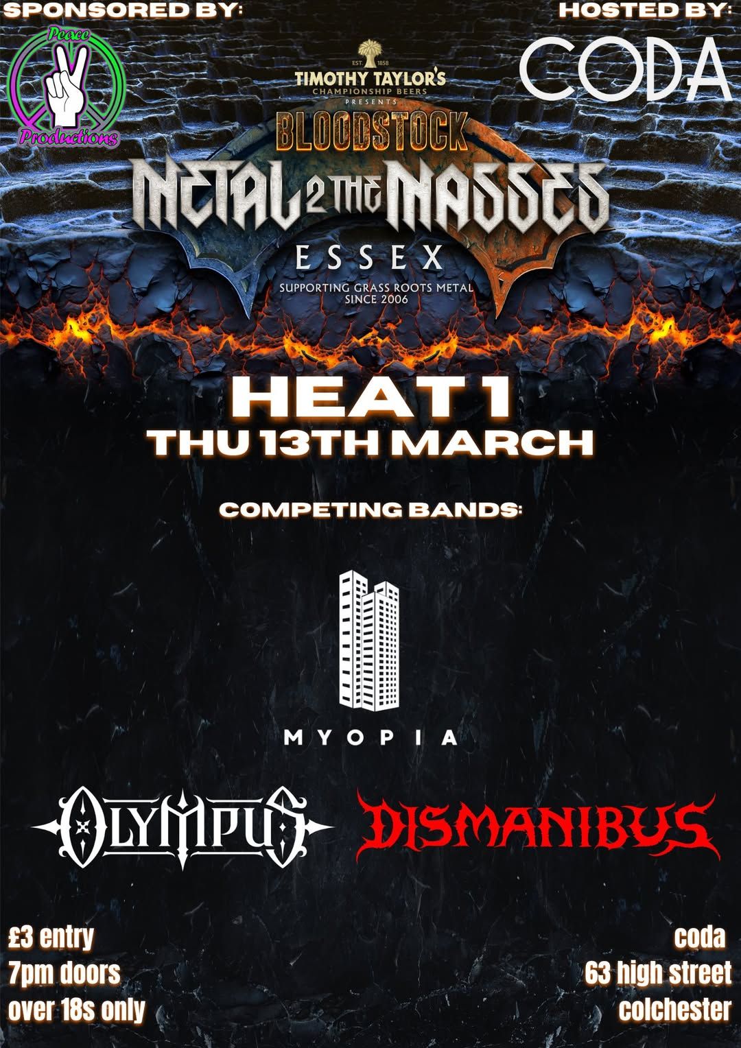 This heat features Myopia and Dismanibus. Olympus have had to pull out due to health issues. Arms to Oblivion will headline the night too. Should be a banger!