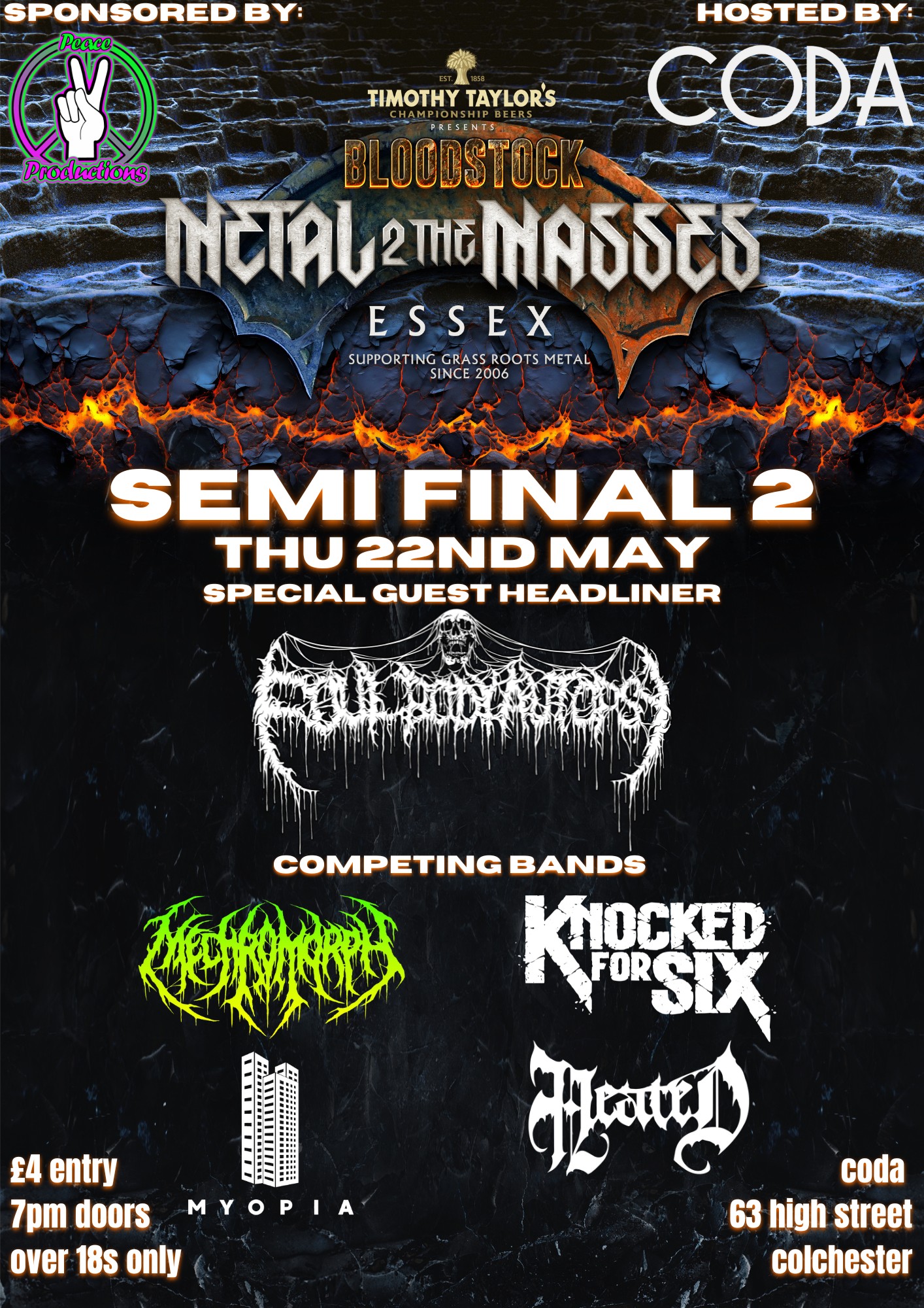 Mechromorph + Knocked For Six + Myopia + Heated. Special guest headliners Foul Body Autopsy