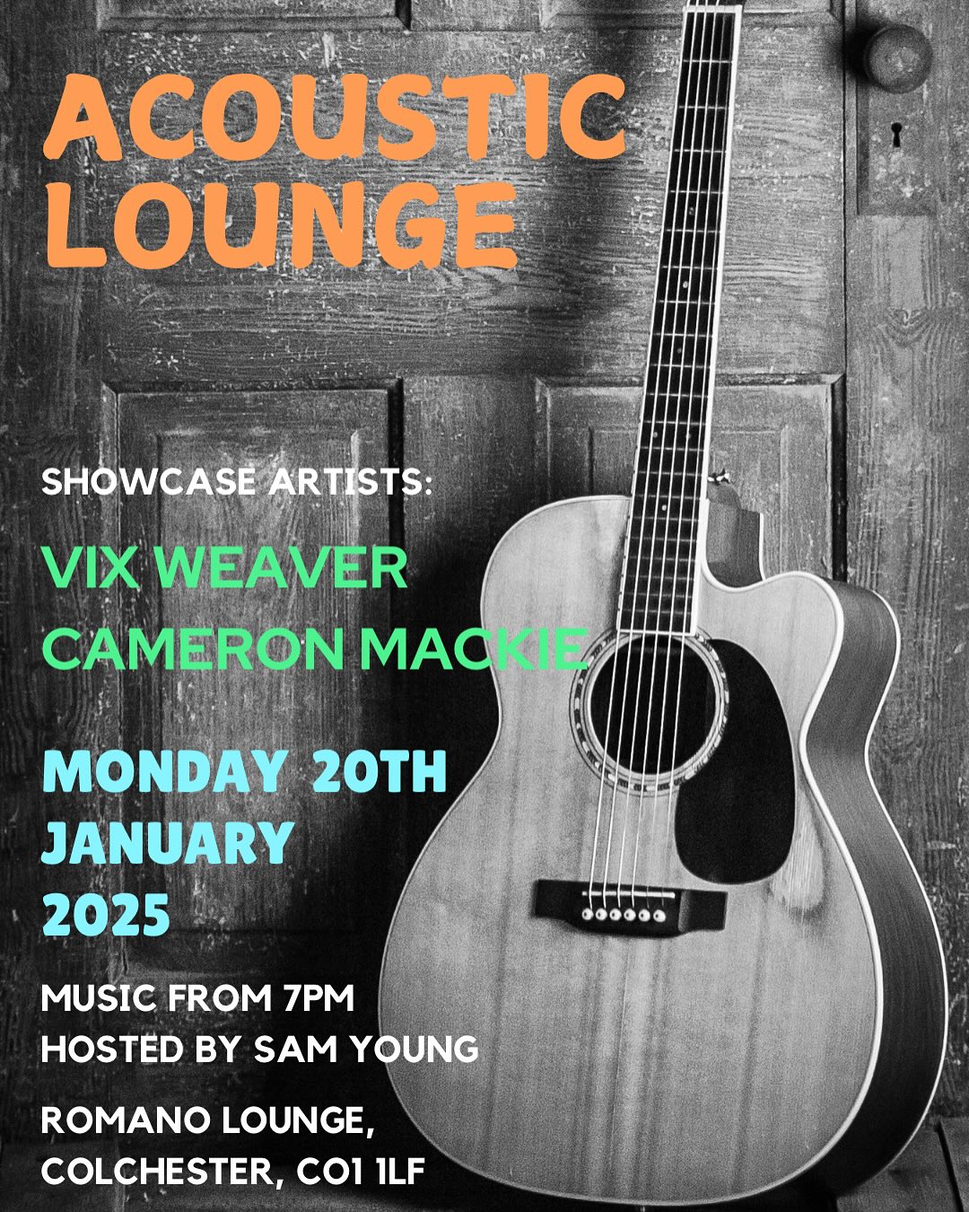 This Monday we have the lovely Sam young returning to host our acoustic lounge sessions.