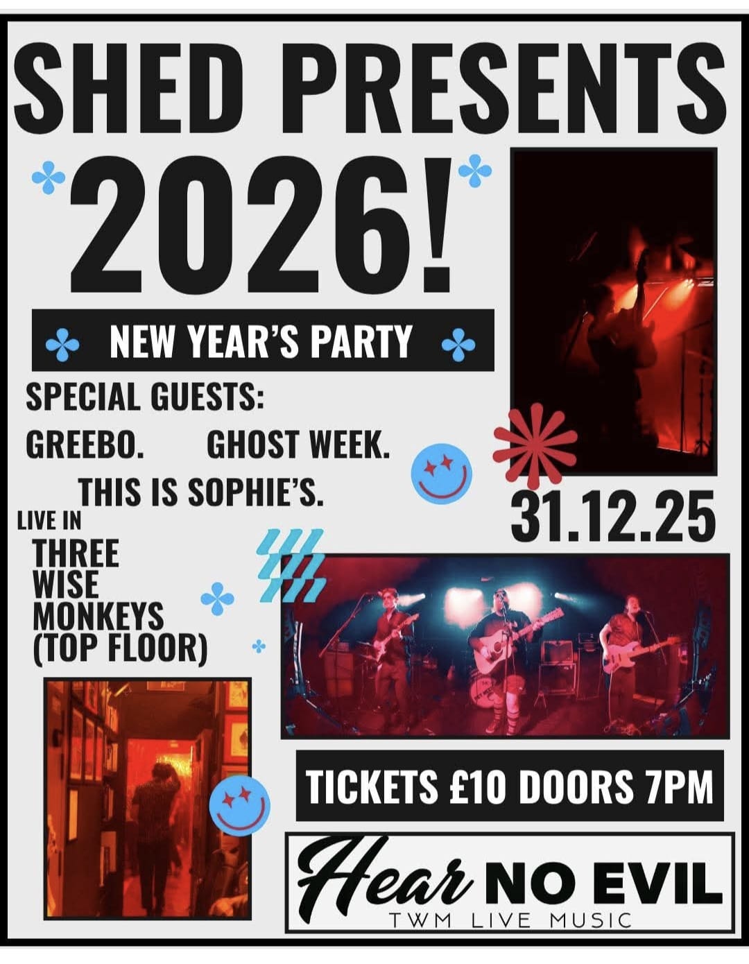 TWM Live Music presents Shed Presents 2026! A special New Year’s Eve party at Three Wise Monkeys, Colchester. Ring in the new year with an incredible night of live music, great vibes, and celebration as we welcome 2026 in style.